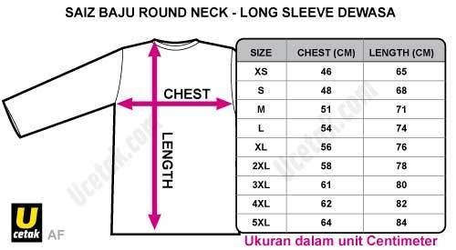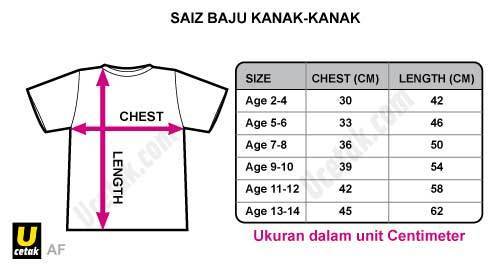 Berikut Ukuran Baju Dewasa, Kanak-Kanak Dan Muslimah